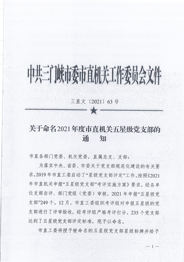 公司近日被中共三門峽市委市直機關工作委員會授予“五星級黨支部”,這是對公司過去工作的肯定和勉勵,更是對下一步工作的鞭策和期許。
