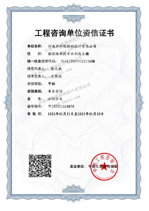 近日,我公司順利通過工程咨詢單位資信評價并取得甲級資信證書。