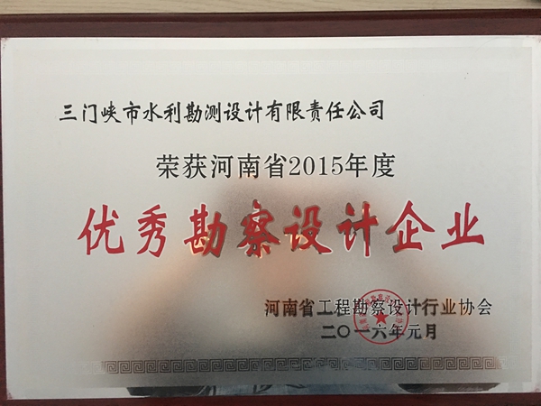2016年1月30日我公司被授予河南省2015年度優(yōu)秀勘察設(shè)計(jì)企業(yè)。