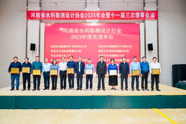 2024年10月12日,在濟源召開的河南省水利勘測設計協會2024年年會暨十一屆三次理事會議上,我公司被評為河南省水利勘測設計行業2023年度先進單位,公司董事長張文敏榮獲協會2023年度“優秀院長”稱號。